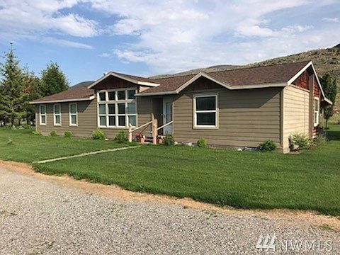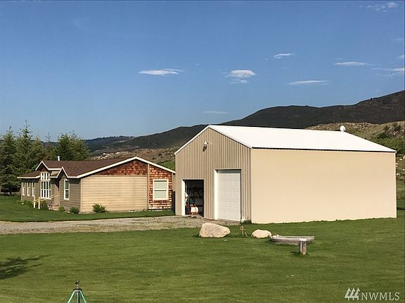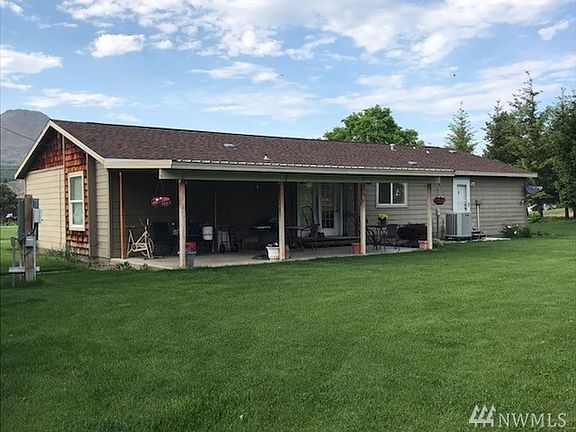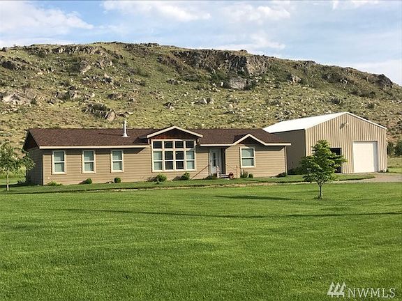Panoramic view of Columbia River Valley from majestic "Billygoat" Mtn., Tenas Mtn. directly to the North and with a peek at the Columbia upriver to Brewster & Dyer Hill. 3 bedrooms with huge bath off Master. Covered patio in rear provides extra fair-weather living space for BBQs or just a little relaxation. Large 30' x 36' Shop/garage w/ loft. Over 5 acres to create whatever type "ranch" you want; on all or part of it.