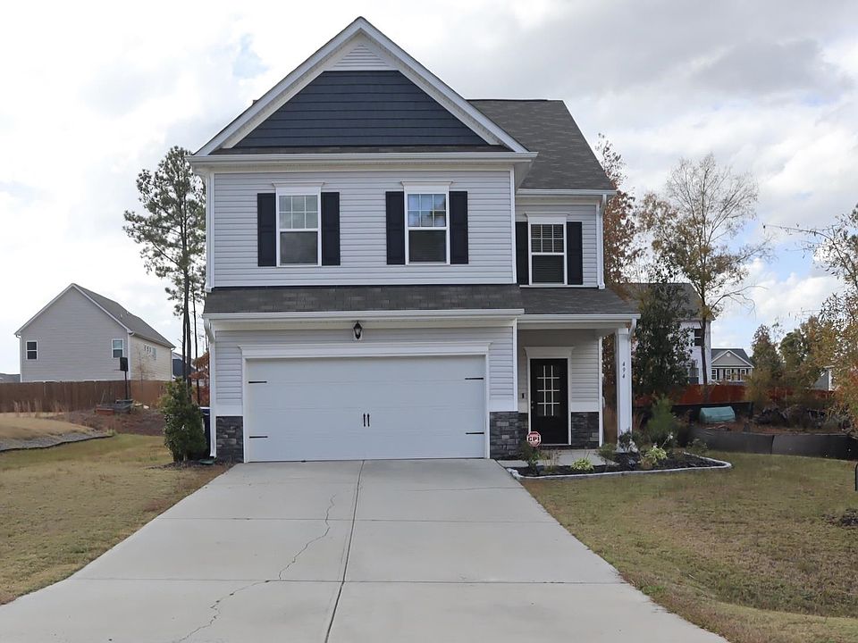 Beautifully maintained 2-story home nestled in sought-after community! First floor opens up to a foyer entry way and coat closet. Home features an open floor concept. Kitchen has large centered island, breakfast area and walk in pantry. Second floor features large owner suite with an oversized closet, dual vanity sink in owners bathroom, and separate shower and tub. 2 additional rooms/full bathroom and loft that can be used as an office space or for entertainment. Backyard features an extended patio and privacy trees! Make this your home today!
