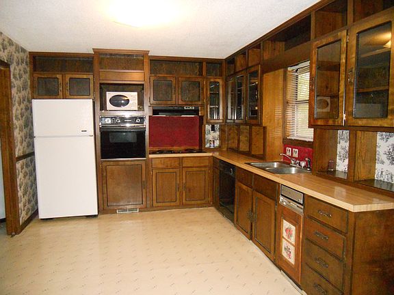 Four bedroom 3 Bath A wrap around porch with sliding glass doors giving access from the kitchen. This house has a large walk in master closet and large master bath.A cute make up vanity is built in to one of the bedrooms.The dishwasher, stove, microwave,and refrigerator are furnished.It has a Complete basement.A nice feature is the two car garage. It also has an extra garage/ workshop in back.