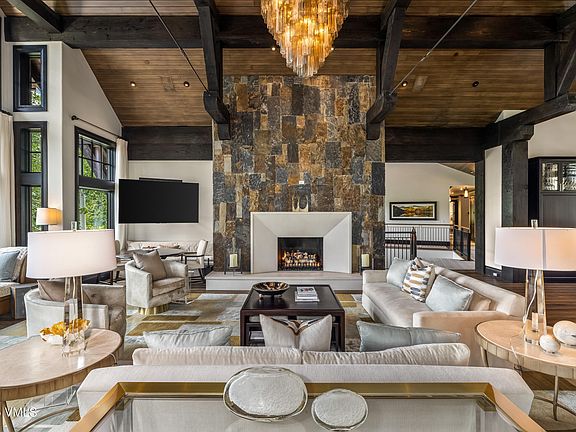 Inside, soaring ceilings and expansive windows frame the dramatic Gore Range while flooding the open-concept great room with a floor to ceiling fireplace, two dining areas, and gourmet kitchen with natural light. A butler's pantry enhances the home's entertaining capacity, while the in-home elevator connects all levels with ease. The main-level primary suite is a sanctuary in itself, featuring a spa-inspired bath, private office, and serene mountain views. Five additional en-suite guest bedrooms, plus a custom bunk room, including a themed children's room and sophisticated adult suites, offer space for multi-generational living.