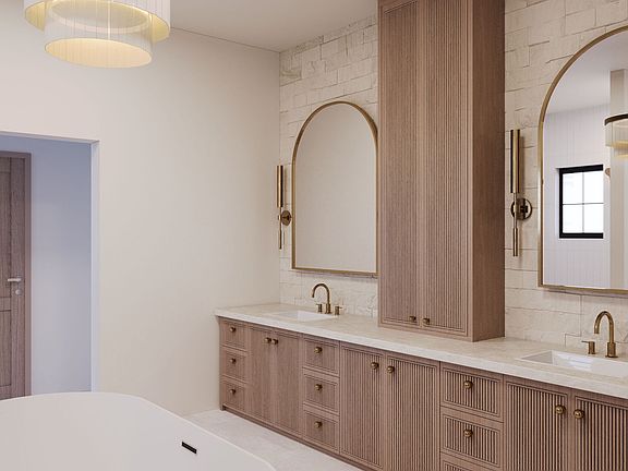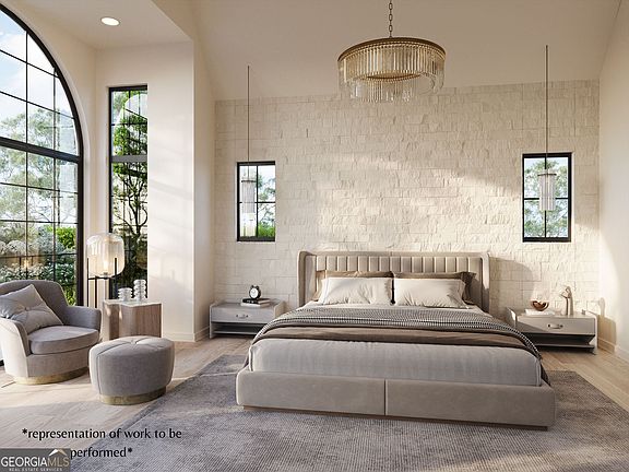 Luxurious estate on 3.27 fully fenced picturesque acres in a premium Canton location. This 7-bed, 7-bath home spans three thoughtfully designed levels. Through the impressive 11' double iron/glass doors, a two-story foyer reveals a custom chandelier, vaulted curved LED staircase, 9.5" European white oak floors, and views of the pool, spa, and backyard. The main level features a custom white oak kitchen with Wolf/Sub-Zero/Cove appliances, Taj Mahal quartz, designer pendants, a large waterfall island, and a 12' slider opening to the covered patio with a custom built in outdoor grill. The living room includes an oversized wood-burning fireplace, 11'+ ceilings with white oak beams, a second 12' slider, and a custom Italian alabaster chandelier. Also on the main floor are a functional scullery, vaulted laundry room, a guest bedroom/office, and a stunning primary suite with vaulted ceilings, custom lighting, a 12' arched window, Texas limestone accent wall, spa-like bath with limestone details, oversized shower, white oak double vanities with Taj Mahal countertops, and an ultra-luxury custom closet. The upper level offers three vaulted bedrooms, an office/media room with bar and fireplace, and a large bonus room. The terrace level includes 10' ceilings, a full bar, game room, home theater, home wellness center with built in infrared sauna and cold plunge, and a large guest suite. An attached by porte-cochere guest house adds its own 2-car garage, kitchen, living area, bedroom, bathroom, and closet. Additional features include white oak veneer interior doors, full aluminum windows and doors, upgraded HVAC, spray foam insulation, whole-house prewiring, camera system, custom cabinetry and stone, and oversized 20' x 9' solid white oak garage doors. The exterior blends natural Texas limestone with Cementous siding, while the no-expense-spared backyard offers a pool, raised hot tub overlooking vast neighboring pasture and water views, fire pit area, and over 1.5+ acres of flat usable land beyond the pool. Currently under construction; estimated completion February 2026. *Renderings are a representation of work to be performed.*