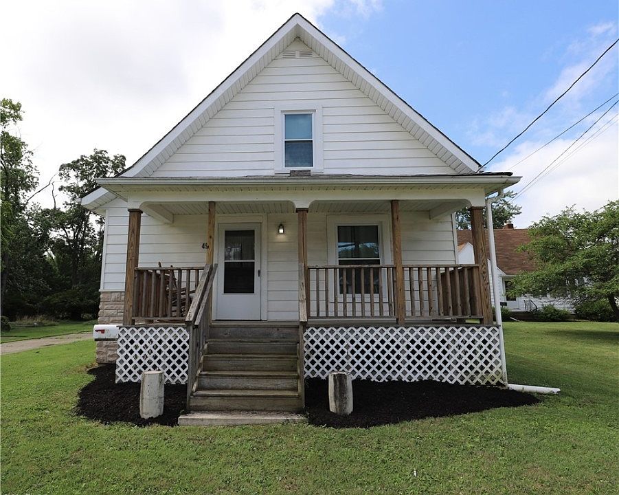 Welcome Home!! Charming Colonial built in 1897 with a nice front porch. Eat-in Kitchen with loads of countertop space & cabinetry! Dining Room with built-in china cabinet & a serving tray that folds down from the Kitchen to the Dining Room. Spacious Family Room with pocket doors. Large Bedroom on the 1st floor. Full bath/Laundry Room also on the first floor. Some updates include: Sanitary lines 2022, HWT 12/22, Furnace 6 years, flooring on the 1st flr 2022, newer siding on 2 story building. 20x12 building, 18x24 building , plus 2 smaller sheds. Large city lot-.79 acre! Has a deck & patio area-just needs a little tlc. Seller selling "as is"!