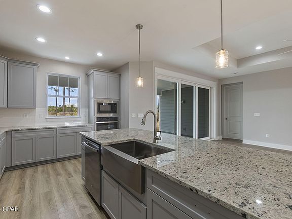 NEW CONSTRUCTION - Panama City Beach's desired Breakfast Point subdivision built by Southern Coastal Homes-Offering easy access to the white sandy beaches of the Gulf of Mexico, Publix shopping center, Breakfast Point Academy-rated A, & the famous Pier Park. INTERIOR features of this coastal inspired home offer a private Foyer entrance, large volume great room with an open floor plan, kitchen with center island, custom cabinetry with soft close drawers & stainless steel appliances, master suite with tray ceiling, tile shower, double vanity & large walk-in closet. Guest bedrooms with access to full bath, dining room, & laundry room. EXTERIOR of this home features a 2-car garage, covered porches in the front & back, fully sodded yard with sprinkler system.