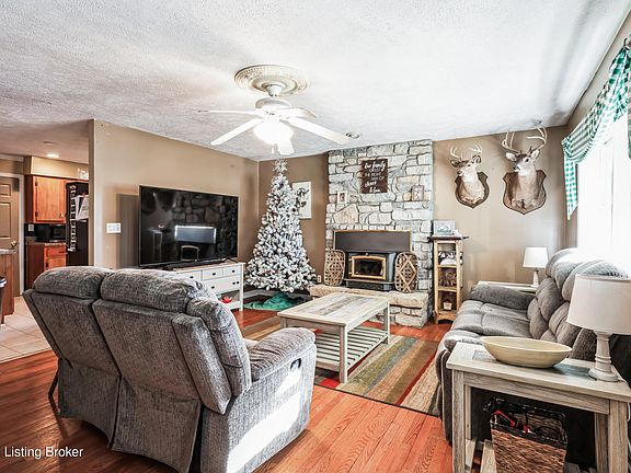Welcome to 494 Miles Ln, Bagdad, KY 40003, a charming Queen Anne-style ranch situated on 3.19 acres of peaceful, country land. With 1.2 acres fully fenced with black four-board horse fencing and the remaining acreage slightly wooded, this property offers both privacy and a tranquil natural setting. The home features an inviting front porch with scalloped siding and columns, enhancing the classic look of the stone and siding combination on the exterior. Inside, you'll find a cozy great room with a stone fireplace, hardwood floors throughout much of the home, and plenty of natural light. The kitchen is ideal for cooking and entertaining, with wood cabinetry, recessed lighting, a French door refrigerator, and a large island. The formal dining room, complete with a (CONT) > >> chandelier and hardwood floors, offers a built-in nook ideal for displaying collections, china, or creating a buffet-style area with a little updating. The three bedrooms are spacious and boast hardwood floors and molding details. The second living room is currently being used as the primary suite and features vaulted ceilings that beautifully capture natural light. Attached to the home is a sunroom with wood flooring and bead board ceilingsan ideal space to unwind or enjoy the view of your beautiful surroundings. Located just off KY-12 and US-60, this home offers the best of rural living with easy access to nearby communities. Heritage Elementary School is within 7 miles, making it a great spot for families.