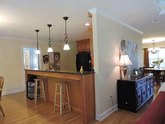 Beautiful, like new brick home in a quiet neighborhood close to town. 5BR/3BA traditional home features an open floor plan. Kitchen has raised panel solid maple cabinets, granite counter tops and solid surface stove. Pantry off kitchen. Breakfast bar will seat 4 to 5 people. Great room has tray ceilings with concealed lighting in living room and crown molding throughout home. Two of the bedrooms share a Jack and Jill bath. A full bath located in the hall for guests. All baths have tile floors. Master bedroom has a extra large walk in closet. Large master bath has tile shower and garden tub. Hardwood laminate in kitchen, entry, living area, and dining area. Carpet in bedrooms. Laundry room off the carport entry has tile floors. French doors open off living area to a concrete patio. Large flat landscaped yard is perfect for kids to play or entertaining. . A two car garage is finished and features overhead door with entry code system. Concrete drive. 5 minutes to Marina and boat launch