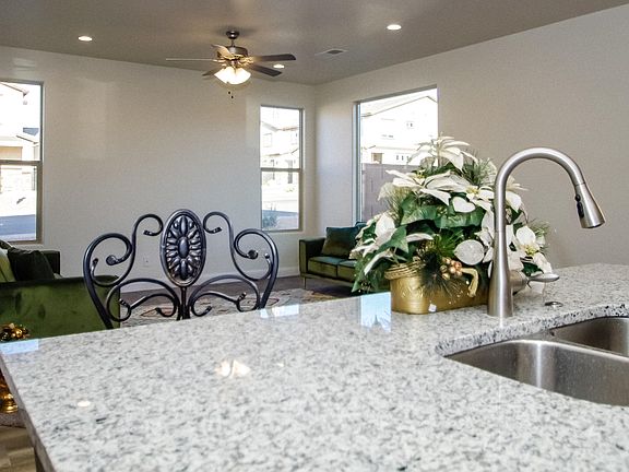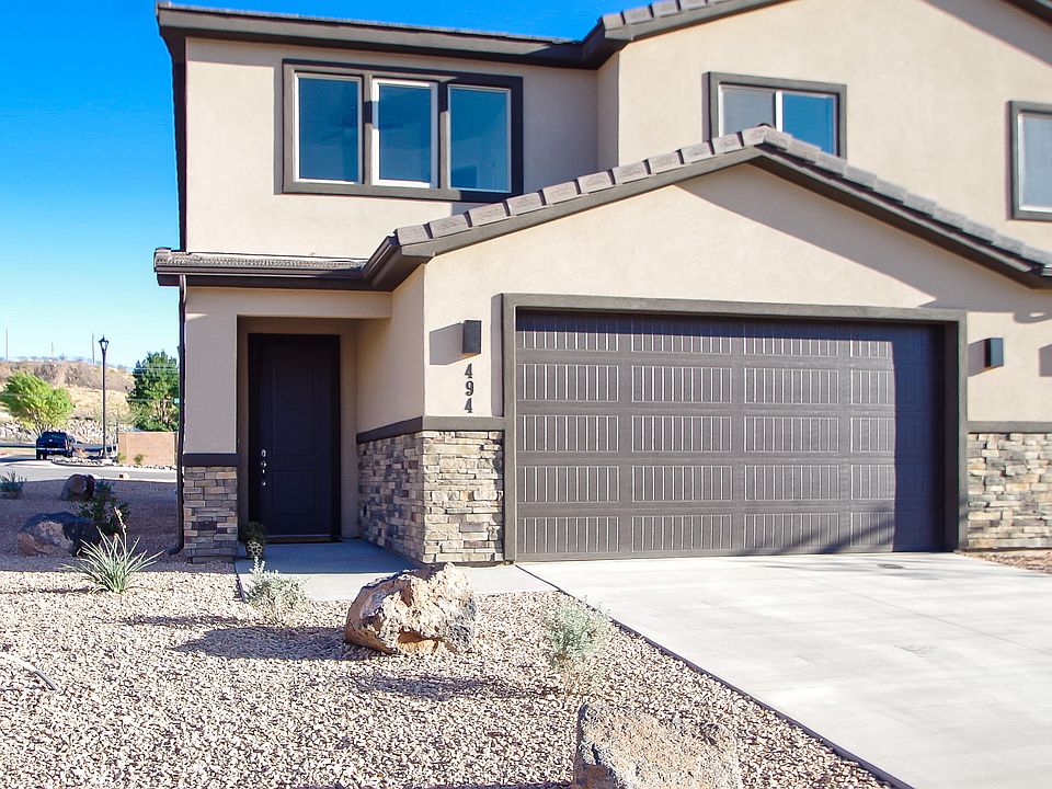 The 4 Bedroom Model Townhome in Hurricane Heights- close to everything with amazing views! Large kitchen with island, custom cabinetry, granite countertops, and Moen fixtures throughout. Tiled master shower and tub surrounds. Large Master Bedroom with walk in closet. Upgraded dual zone 4 ton HVAC. Oversize (24x21) garage deep enough to fit most full size pickups.