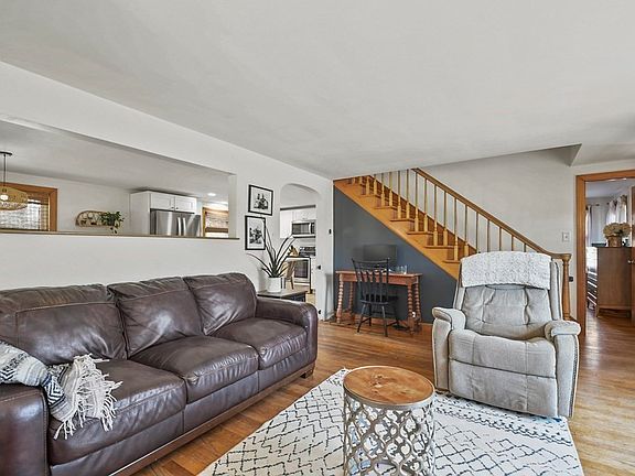 Be in your new home just in time for spring! This adorable 3 bed, 1 bath cape has many modern updates while keeping its original charm! Open the front door and you are greeted by a spacious and sunny living room with hardwood flooring, box window and passthrough to the dining area. The beautifully updated kitchen features new flooring and cabinets with brass hardware, lovely quartz countertops, 7 ft quartz island with breakfast bar for extra prep space, workstation sink, s/s appliances, and a dining area with exterior access. Off the kitchen is the updated full bath with tiled in tub and shower and shiplap along with the primary bedroom with ample closet space, hardwood flooring and a door to the living room. Upstairs offers 2 additional bedrooms with built ins. Need more space?! The lower level provides a partially finished basement with large bonus room – bring your ideas! Replacement windows throughout. Perfectly situated on a corner lot in desirable Fitchburg neighborhood.