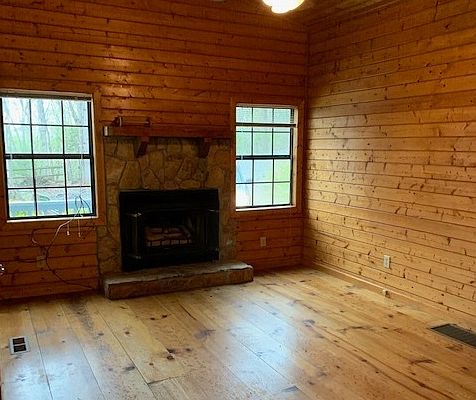 A log cabin in the woods! Just what you are looking for in a mountain rental. Single level living with privacy and only 3.5 miles from Blue Ridge. Located close to hiking trails, waterfalls and water sports in the Aska Wilderness area. The home features 2 bedrooms, 1 bathroom, living room with gas log fireplace, kitchen, dining and laundry room with washer and dryer. Exterior features include 2 covered porches, two large deck areas and plenty of outdoor living area. Water service included in rental amount. Good credit and rental history required