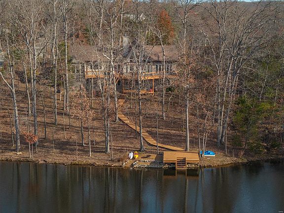 This welcoming lakefront home embodies cozy charm. Nestled on a gently sloped wooded lot, this property boasts serene waterfront views and many thoughtful features. Step inside to find a vaulted living room adorned with a stunning stone fireplace. The spacious main floor is anchored by a primary bedroom suite and a delightful all seasons room. The large kitchen is a chef’s dream, featuring a massive center island, ample cabinetry, and plenty of room for entertaining. The lower level has 3 additional bedrooms plus a rec room. Outside, there's an oversized three-car garage plus a fenced in front yard showcasing a breathtaking Missouri perennial flower garden, complete with a large koi pond and a cascading waterfall. A sprawling deck creates an ideal space for outdoor gatherings. At the water’s edge, a fantastic lakeside dock awaits—perfect for boating, fishing, or soaking up the sun. This lakeside haven is more than a home; it’s a lifestyle. Agent is related to seller. Additional Rooms: Sun Room