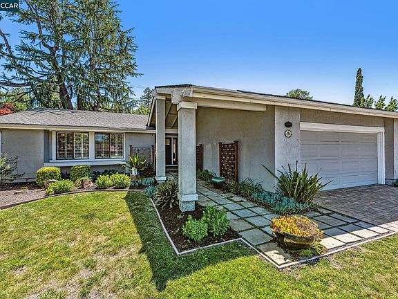 Discover this stunning updated home close to downtown Pleasant Hill and the coveted Poet’s Corner neighborhood. This home is located at the end of Turrin Drive which is a cul-de-sac. This turnkey home with artist inspired Tuscan-style tree lined entertainers' yard, spacious stone paver patio, tranquil fountain plus pergola for al fresco summer dining and BBQs.The entry foyer leads to a vaulted ceiling living room with a gas fireplace and an intimate dining area with built-in hutch. The custom designed chef’s kitchen features high-end cabinetry, 2 separate sinks with disposals, stainless appliances, large center island and is adjacent to the family room. Lovely primary suite opens to the private backyard with lush landscaping surrounded by shade trees. Beautifully remodeled bathrooms. Hardwood floors, Recessed lighting, Dual pane windows, Plantation shutters, Central heat and AC, Solar electric power system, Fenced dog-run area.