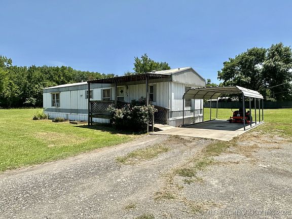 Cute 2 bedroom, 2-bathroom mobile home with a one-car carport on a private lane in Panama, OK. The home has a nice wooden covered porch and overlooks a beautiful oversized lot with mature trees. Property is being sold "AS IS."