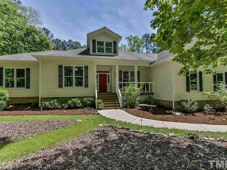 Custom designed home on 11 private acres has over 3/4 mile of walking trails through hardwoods and beautiful rock outcroppings. Near the house are fruit trees, berries, a detached shop, and fenced garden & yard. Light filled home, gas fireplace in master, wood fireplace in family room, crown molding, gleaming hardwood floors, great closets and hidey holes. Generous separation of space for families both inside and out. Beautiful condition. 6 minute bucolic drive into Carrboro or to Chatham shopping.