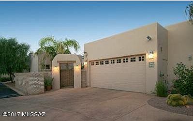 Spectacular Model home. Best mountain views in The Garrison, very popular GATED Ft. Lowell Historic District next to The Parade Grounds! All bells & whistles in this Southwestern Territorial home! Lots of Privacy. Great rooms w/high ceilings, custom spot lighting, window walls, gorgeous concrete floors, French doors to large covered patio. 2 huge masters, 3rd bed/office. Viking appliances, great built-ins, pull out drawers, lots storage. Lovely backyard, w/pool & hot tub, fireplace, BBQ areas. Lots of parking! A/C-heat in garage for workshop, etc. Quaint courtyard entry, wall art, easy landscaping. Prop Taxes to reduce $1300+. Appraisal & inspection for this home available. Great Value! Neighbor private sale $575,000 Nov. 30, in public records, can provide.