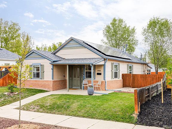 Cascading with streams of natural light, this Regis home offers a radiant escape complete with a luminous sunroom. Refreshed landscaping surrounds the home’s charming exterior featuring a covered front porch. A functional floorplan flows w/ refinished hardwood flooring and crisp white wall color. The living room extends seamlessly into a dining area crowned by a contemporary light fixture. Delight in crafting recipes in an open kitchen showcasing stainless steel appliances, including a new refrigerator and dishwasher. Escape to the exceptional sunroom — the perfect setting for a home office or art studio. A sizable primary suite w/ vaulted ceilings is complemented by a full bath w/ dual vessel sinks. The layout is complete w/ a versatile secondary bedroom and a powder bath. Enjoy relaxing and entertaining outdoors in a large backyard w/ a grassy lawn. A central location offers proximity to Regis University, Rocky Top Tavern and Rocky Mountain Lake plus easy access to the area via I-70.