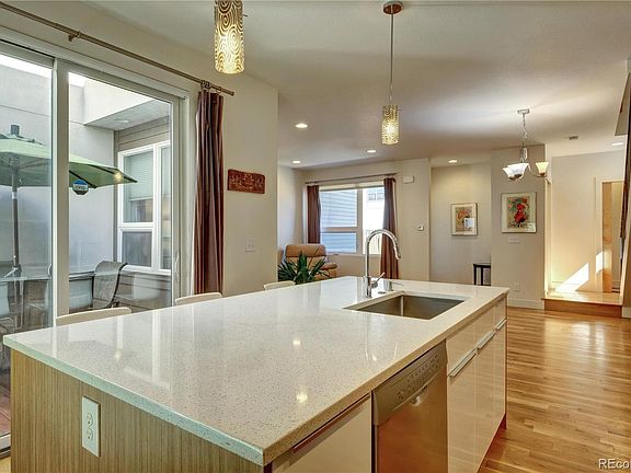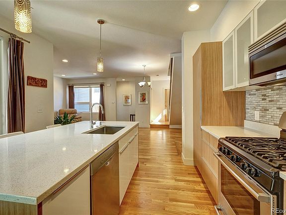 Showings begin Friday, Jan 28th at noon. Beautiful townhome end unit in the Berkeley/Regis area with a great floorplan. Main floor has stylish kitchen with eat in area, dining room, living room and half bath. Rare private deck and small yard area for these types of homes! Upstairs has two bedrooms each with ensuite bathrooms and convenient laundry on the same floor, plus a bonus desk area on the landing. Large rooftop deck for more entertaining space. So many fantastic restaurants and shops nearby at 44th and Tennyson and in the surrounding blocks. Close to Rocky Mountain Lake Park and bike trails, only a few minutes from Downtown and also easy access to the mountains. Sellers will include all appliances, the rolling bar cart under the stairs, the living room "fireplace", and the rooftop deck furniture and fire pit. Property is end unit furthest from the street.