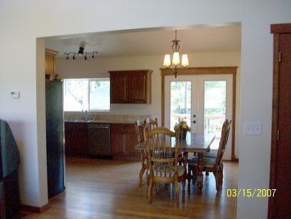 Built with lots of love and care. Beautiful setting in the trees on 4.49 acres. Finished in 2008 but loss of job forces sale. This acerage has public sewer & water, a big plus. Super insulated concrete foam block built, about 3 times R19 insulation. Granite tile countertops and gorgeous cabinetry in kitchen & bathrooms. Bamboo flooring thruout. Vaulted ceilings for a spacious feel .Master bedroom bath, double sinks and jetted tub. Daylight bsmt needs finish but seller has items stored so cluttered now.