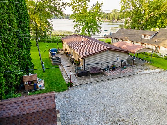 48 ft of firm bottom lakefront on Pretty Lake. 3-bedroom two bath home with a nice size yard. The main bedroom has a recently remodeled bathroom that features a garden tub with a hand shower. The living room flows into the kitchen and into the dining room. The kitchen has plenty of counter space and a heated floor. There have been a few updates to the home. Both bathrooms were recently remodeled. A metal roof with insulation has been put on. New windows at the same time the detached garage was resided. The garage also has heated floors which are heated with a hot water tank. This home also has a reverse osmosis water system and a carport on the side of the home. There is a 12x20 attached deck where you can sit outside and enjoy the beautiful view of the water. A small brick area with a firepit sits a little bit off the water. An aluminum dock that will stay. Any personal property could be negotiated separately from real estate. Owners reserve the swings, playhouse, and gazebo.