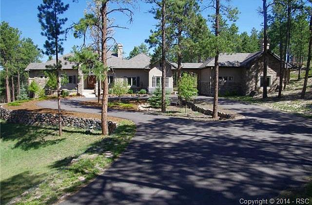 Winner of the MAME Award for "Best Architectural Design for a New Home". Surrounded by towering Ponderosa pines, this distinctive Colorado home is nestled on a magnificent 2.91 acre lot. With the most impressive curb appeal in the Cathedral Pines subdivision, this stunning home not only has an impressive stucco & classic stone exterior but a lovely interior design as well. This walk-out ranch home has a very well-designed floor plan with both the master & guest suite