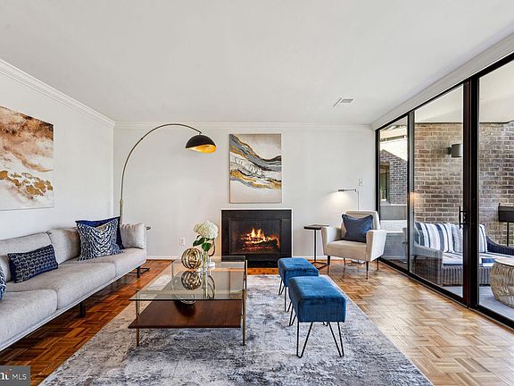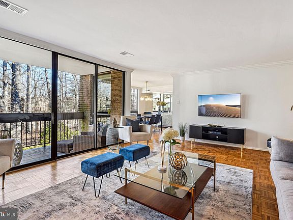 Welcome to this stunning corner unit in Sumner Village! This 1,708-square-foot home boasts two bedrooms, a den, and two full bathrooms, making it a highly sought-after property in the area. Situated at the highest point in the community, this home offers breathtaking views and abundant natural light from its East and West exposures. No steps anywhere! Not from the lobby, the elevator, or the apartment, the trifecta we seek! As you step into the living room and dining room, you'll be greeted by walls of windows that provide stunning wooded views, creating a serene and peaceful ambiance. The formal dining room is perfect for entertaining, while the updated kitchen features new stainless steel appliances, adding a touch of modern elegance to the space. The primary bedroom is a true retreat, featuring a full bath en-suite, a separate dressing area, and a custom walk-in closet. Throughout the home, you'll find new lighting, including recessed lighting, updated bathrooms, recently painted parquet wood floors, and crown molding, adding to the overall allure of the property. One of the highlights of this home is the large private balcony, where you can enjoy beautiful sunrises and spectacular sunsets from both bedrooms. Additionally, two coveted garage parking spaces are included, ample guest parking is available for your convenience, and a large storage room conveys. Conveniently located steps away from the community center, pool, tennis court, and two electric charging stations, this home offers a lifestyle of comfort and leisure. With access to the plaza next door, you'll have everything you need right at your fingertips. Don't miss the opportunity to make this beautiful, bright corner unit your own. Experience the best of Sumner Village living in this exceptional home. Sumner Village, a Certified Wildlife Community, spans 27 verdant acres with direct access to the renowned Capital Crescent Trail. The community offers many amenities, such as 24-hour guarded entry, an inviting pool and deck, tennis and pickleball courts, a fitness center, a sauna, a party room with a full kitchen and bar area, and a well-curated library. Enjoy the convenience of two electric charging stations and communal grills with a picnic table. You'll never be bored with an array of neighborhood events and activities. The community is next door to various shops, dining options, and services. You'll enjoy seamless connectivity with just a block to Ride On and Metro Bus, less than two miles to DC, and easy access to downtown, The Kennedy Center, NOVA, and major roadways. Experience the excitement of the soon-to-be nearby Westbard Square development, located only two miles away. The recently renovated lobby and hallway renovations further enhance the charm of this welcoming community. Regardless of size, your furry companion is also welcome in this delightful home. The seller is an active, licensed Real Estate Agent in MD/DC & VA.
