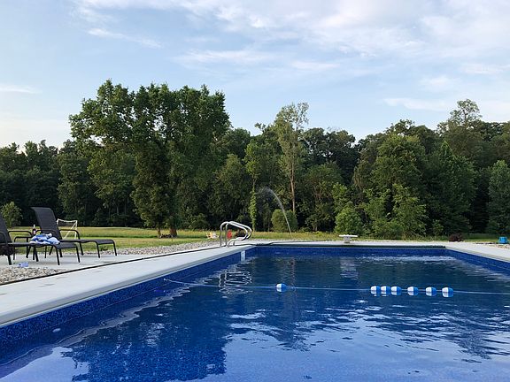 Gorgeously updated home backing up to the woods with walkout basement. 5 Bdrms, 4.5 Baths, 3.5 Car Garage. New kitchen, new master bath, refinished hardwood floors, fresh paint and fixtures throughout. Quality built by Banister and designed by Bill Fox. Open layout with great entertaining spaces. Brand new 20x40 inground pool with sundeck, firepit area, and huge trex deck. 10 ft ceilings, Geothermal, 1.9 acres. Oversized garage, gas range, limited rules. Hoa fee $325/year