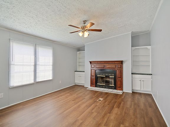 Recently updated 3 bed 2 bath manufactured home nestled on .64 acre corner lot. New heat pump 2024. New roof 2021. New gutters. New light fixtures. New luxury vinyl plank floors throughout. Fresh interior paint. Spacious living room. Renovated galley style kitchen offers new lower cabinets & new countertops. Sunny dining area. Large family room features built-in bookshelves & wood burning fireplace. Primary suite has oversized walk in shower with separate soaking tub, double vanities & generous walk in closet. Expansive raised patio in back.