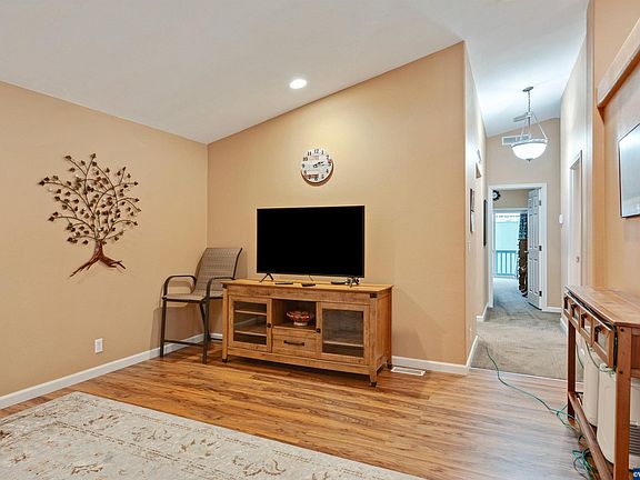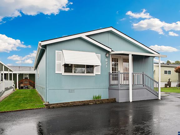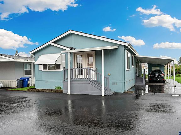 Desirable Sunnyside Adult Park with easy access to I-5; shopping; transportation; and dining. Built in 2007 with vaulted open floor plan. 1377 SF with 2 bdrms, 2 baths plus office. Spacious Living/Dining area with laminate floors. Convenient Kitchen with walk in pantry; oak cabinetry. Inside Utility. Primary suite features tub, shower, dual vanities; and sliding doors to covered deck for outdoor enjoyment.Heat Pump; Attached Carport; Garden shed. Park Space Rent is $575 includes water, sewer, garbage
