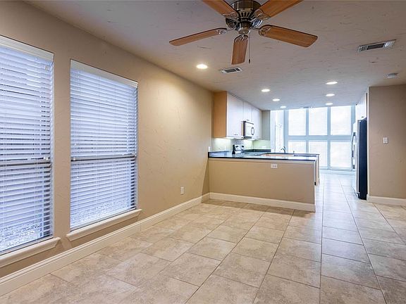 Great location for a completely modernized ground level apartment in a converted duplex. Updated Whirlpool stainless appliances, natural stone counters and flooring, tall ceilings, abundant natural light and new bedroom carpet. The shared wall between the bedroom and Jacuzzi bath has been modified with a unique two-sided fireplace with faux gas logs. Stacked washer and dryer included. Very low maintenance in rear yard, no grass. Easy access to I635, DNT, I35, and 75. Property is diagonally opposite from the Galleria and Midtown development. One designated parking spot in shared garage. Pets case-by-case, no aggressive breed.