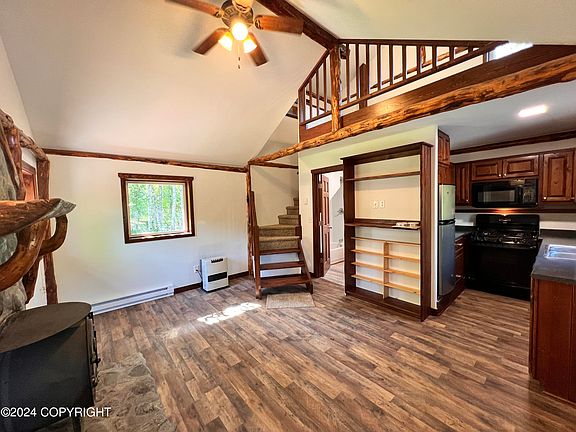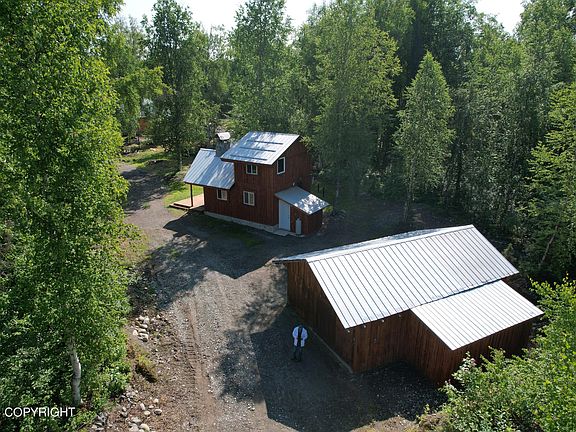 Small living at its best! Low maintenance, low utilities, low purchase price, low to no yard work. PLUS super cute, well built and maintained, super cozy, one bedroom with all the amenities! Nearby LakesDid you see that beautiful outdoor rock fireplace on the front deck? Bedroom is loft style upstairs, main floor features high efficiency woodstove, Toyo heather that was serviced October 2023, fulkitchen with room to add a dishwasher, full bathroom, cozy living room perfect for enjoying your morning coffee in front of the woodstove. Downstairs is where the water holding tank is held. Separate entrance from outside plus a trap door style entrance from the bathroom. Brand new septic system installed 2023! Also has an additional cistern in the yard for any outdoor water useage you might have like gardening in the established greenhouse and garden area or washing off your ATV. You also have a full 2 car garage with additional storage. You also have a new privacy fence in the back yard, and additional outdoor storage found in the shed that houses the oil tank. Electric is provided by MEA meter, also comes with a generator. Live on or off grid, the choice is yours! Three heating systems, wood stove, fuel oil Toyo stove, and electric baseboard heat. Home is built very tight and efficient with over 4" of additional hard foam insulation!! Water can be obtained from nearby creek and/or neighbor adjacent which is the current set up. Small lot with amazing privacy! Hard to see the driveway as you can't see the cabin from the road, and you can't see the neighbors through the trees from the property. Small, simple, inexpensive living or use for your get away from the world spot. Quiet and secluded with all the requirements and won't break the bank!