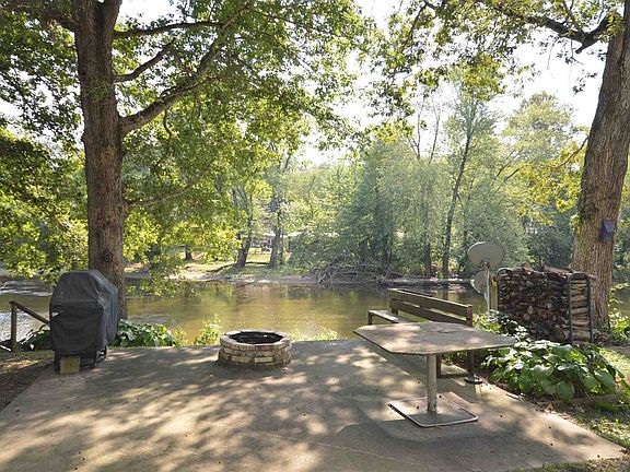 Sit back and relax with over 100 Ft of river frontage.Steps leading right down to the water. Wonderful patio area with a fire pit. Also includes a storage barn with electric. Enjoy the peacefulness of this property. Well maintained home many updates including a new furnace 2018. Large living room with wood burner. Spectacular sun room over looking the river. Move right in, most furnishings stay. A very large 3 car garage with work area make this property a great place to call home.