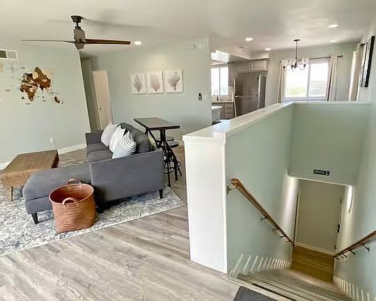 FULLY FURNISHED Fully Furnished 3BR/2BA Apartment near the Beach Clean, comfortable, and move-in ready! This spacious 3-bedroom, 2-bathroom apartment is located just a 10-minute walk from beautiful Mandalay Beach. The unit occupies the entire second floor above a garage and is accessible via a flight of stairs please note it may not be suitable for individuals with mobility issues or families with small children. Enjoy a light-filled living space with plenty of windows, a large kitchen that opens into the dining and living area, and a private outdoor deck perfect for relaxing in the cool Oxnard evenings. Features: -Fully furnished -Bright and airy layout -Private deck -One garage parking space + one driveway space Month to month lease available. First month's rent and one-month security deposit required. $250/month includes all utilities.