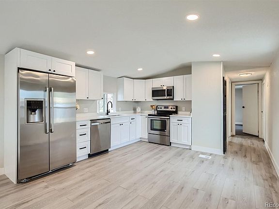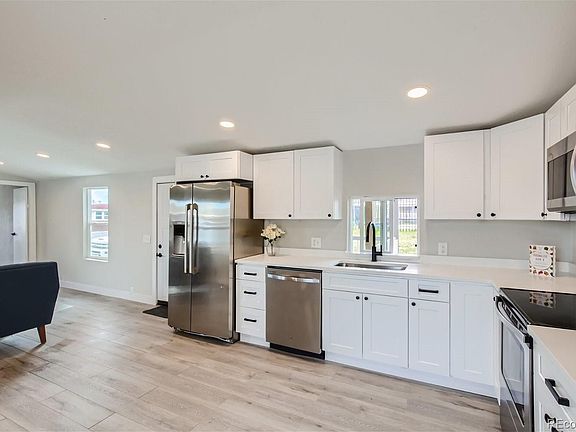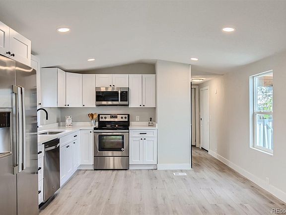 Get ready to fall in love with this 2 bedroom 2 bath gorgeous remodeled home in North County Village! This home features an open floor plan with lots of light from the from the brand new windows. The beautiful kitchen has white quartz countertops that give a contemporary style with a new sink, new faucet and large single basin stainless sink and lots of cabinets for storage, plus there is room for a dining table. Stay cool this summer with the central air conditioning. Save money with all new windows throughout the reset of the home as well. There are new vinyl floors throughout the main living areas and the bedrooms have new decorative carpet. Escape in to the primary bedroom that has its own private bathroom that has a new vanity, quartz counter top and tile extending to ceiling in the tub surround The secondary bathroom has a new vanity with quartz countertop and custom step-in shower, also tiled to the ceiling. This home comes complete with washer and dryer hook ups. Enjoy your outdoor living space with covered front patio and the private back yard is ready to make your own. Community amenities to enjoy are a Playground, Clubhouse and Swimming Pool. RV storage also available with monthly fee. Divinely located minutes from the light rail station, Pelican Ponds Open Space with walking trails, The Owl's Den at Pelican Ponds Disc Golf Course and easy access to I-25.