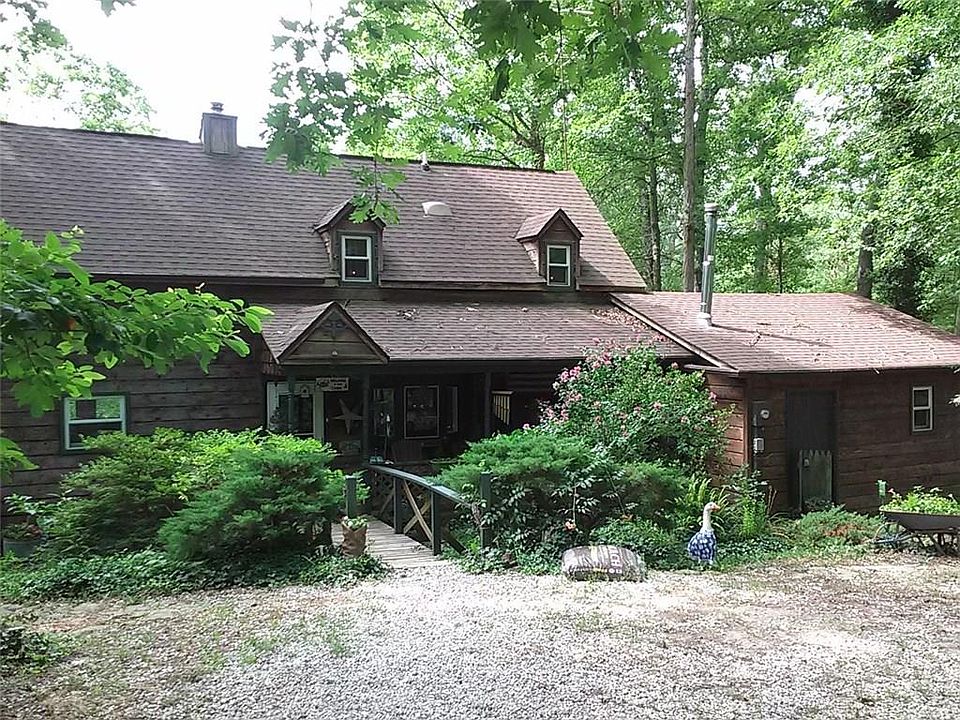 LOOKING FOR SECLUSION AND PRIVACY? LOOK NO FURTHER! VERY UNIQUE HOME SITUATED ON 7.99 ACRES. MASTER ON MAIN LEVEL. 2 BEDROOMS UPSTAIRS WITH HALF BATH. SELLER HEATS WITH 2 WOOD STOVES BUT HAS BASEBOARD ELECTRIC FOR BACK-UP. DETACHED GARAGE AND MINI-BARN FOR STORAGE. ALSO "LEAN-TO" BULDING AT TOP OF DRIVE FOR FIREWOOD STORAGE. ALL WINDOWS (EXCEPT LARGE WINDOW IN LR) HAVE BEEN REPLACED BY BEE WINDOWS IN LAST 10 YEARS, INCLUDING SUNROOM ON LOWER LEVEL.