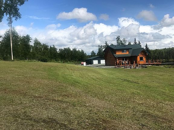 For Sale By Owner. Private Lakefront Log Home on 10 acres! Ultimate Alaskan Dream retreat! This custom log home has everything! Over 2400 sq feet, 3 bedroom, 3 bath, full walkout basement, covered patio, hand scribed Nenana Logs on beautiful, serene Darla lake with a huge 30X40 2 bay garage/shop. 1 shop bay is heated with concrete slab. 10 mostly flat, dry acres with plenty of large Birch and Spruce trees for privacy or room to build whatever you want. Feels like you are way out in the woods but yet conveniently located just 7 miles west of Wasilla. Relax on the large front deck that wraps around the south side and watch moose, fox, lynx, Sandhill cranes, owls, eagles, swans, and tons of ducks. Recently remodeled open concept kitchen with a large island, quartz countertops, stainless steel appliances, farm sink, dining nook and living room with vaulted ceilings. Beautifully landscaped yard has a peony garden, large raised bed vegetable garden, Haskap and Currant bushes, bleeding heart, lilac and much more. Horseback ride, bike, motorcycle, 4-wheel, snow machine, dog mush right from your own property, no trailering to nearby trail systems or paddle, canoe, swim or ice skate right off your own dock! Call the number below to to set up a showing or look it up and reply via Facebook Marketplace