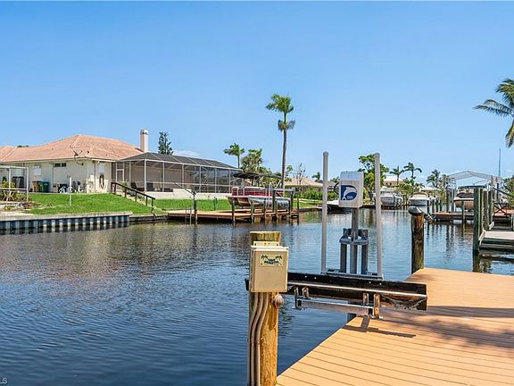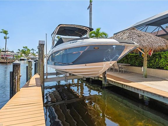Absolutely Stunning Turn-Key 4 bed/3 bath + Den Pool Home on Sailboat Access Canal. Every Boater's Dream, access to the Caloosahatchee River is just Minutes away! Dock area offers a large Tiki Hut, 10,000 lb Boat Lift/Canopy and Captain's Walk. Boat is available for purchase. Home is located in a Quiet Neighborhood on a Cul De Sac. Double Entry Doors invite you into a Gorgeous Open Floor Plan and Huge Family Room. Kitchen has Granite Countertops, Decorative Cabinets, Counter Bar, under Cabinet Lighting, Stainless Steel Appliances including a Smart Screen Refrigerator, Pantry and Eat-in Area. Pocket sliding doors lead you to a large screened in Beautiful Lanai area, Outdoor Kitchen Grill w/Commercial Hood, Granite back Splash/Countertops and Bar Seating. Home exhibits Tray Ceilings and Crown Molding everywhere. Large Laundry Room has Built in Cabinets and is located off of the 3 Car Garage. Salted Pool is Heated w/ a Raised Spa. Plenty of Deck Space to Enjoy the Sun. New pool pump, heater, screens, and salt chlorinator. for pool.