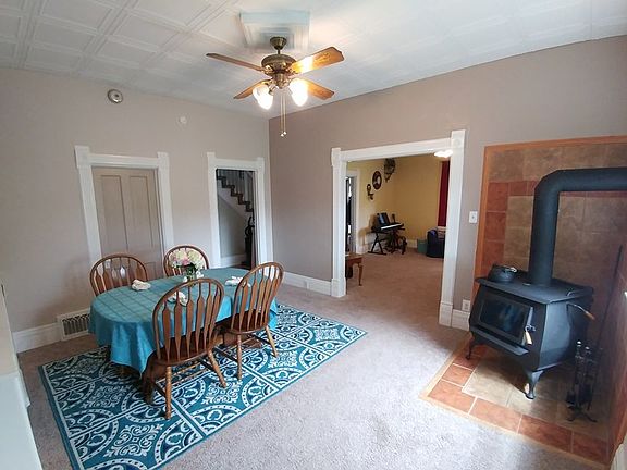 Victorian Beauty! A country feel while enjoying all the amenities of city living. 4 Bed 2 bath home on a large lot looking for new owners. A farmhouse style home with all the character and class you would expect. Large living room, dining room, and kitchen. All with high ceilings. The three bedrooms upstairs are spacious and roomy. Partially finished basement can be finished into whatever you want or left alone to be used for storage. Large, partially fenced backyard is great for kids and pets. Four plum and four apple trees. Rhubarb. Garden area. Mature trees provide great shade for the summer heat. Seven year old Blaze King wood-stove makes for cozy winter evenings.