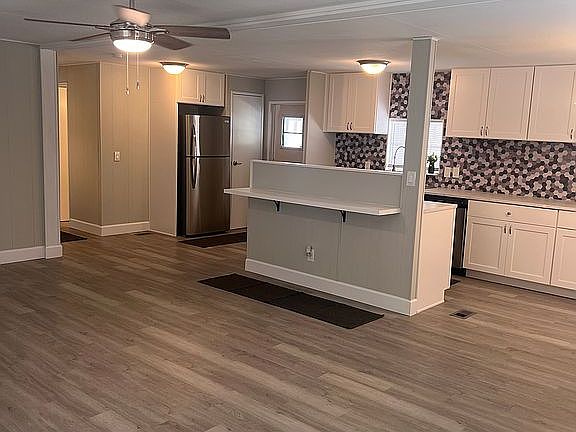 Recent remodel! Introducing this charming and immaculate 2 bedroom 2 bath home in Sunny Florida. This home features a refrigerator, range, washer and dryer. There is an open concept floor plan with the floors being carpeting and linoleum and there is central air throughout. It has a screened-in Lanai as well as a patio where you may sit and relax at your leisure. A carport together with an attached storage shed adds an extra touch not to mention the spacious backyard. Lot rent includes water, sewer, lawn care, trash and cable. Located in a wonderful Park, Windmill Manor, this park offers a clubhouse, community pool, game room, shuffleboard court, billiards and library as well as a dog park since you can have 2 pets up to 25pounds each. This home is centrally located to restaurants, shopping plaza's, medical buildings, airports and our beautiful Florida beaches. Call me to view, I will be delighted to take you on a tour, you will not be disappointed. Also, offering lease to own.