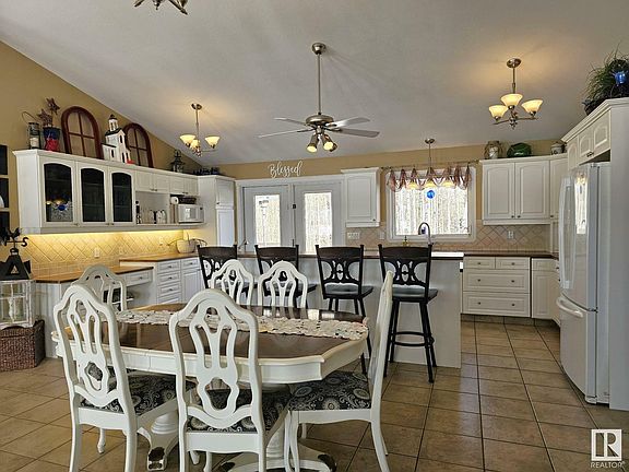 This wonderful acreage is located only 4 paved miles from Drayton Valley in beautiful Hilltop Acres! This massive bungalow offers close to 4,000 sqft developed w/ 6 bedrooms and 3 bathrooms. The kitchen has bright white cabinetry and provides access to a spacious wood deck for entertaining. The two sided fireplace is shared between the bright & open living room and primary bedroom. Downstairs one finds a beautifully renovated recreation room complete with a linear fireplace (the pool table stays) and bar with quartz countertop! 3 more large bedrooms are located in the basement as is a full bathroom with 2 separate showers! Both the lower level and 32x30 attached garage have in-floor, detached garage is 24x26 (220 power). There's a 100x60 area with packed clay if one wants to build a shop. The trout pond has an aerator and is 16 feet deep with approximately 150 trout! The following items are new (2023); central Air Conditioning, Furnace, Pressure Tank, Washer & Dryer, Roof. There's 30 AMP power for RV too!