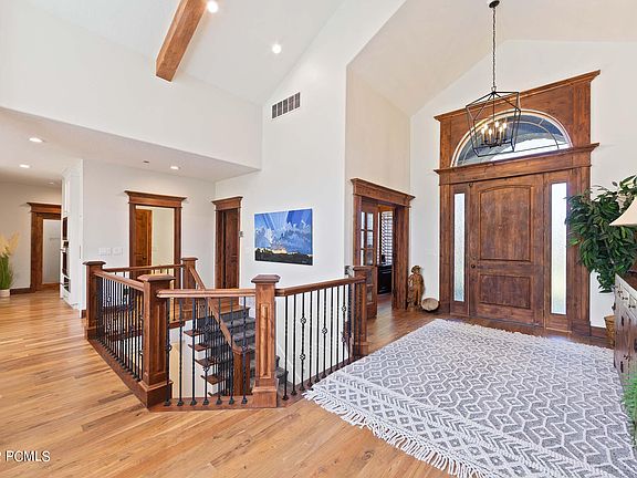 Absolute Perfection in the highly sought after Lake Creek Farms area on 1.33 acres! This Custom Luxury home has high-end quality finishes throughout. You will love the spacious open floor plan with vaulted ceiling and wood beams. The kitchen is a gourmet entertainer's dream with a separate Refrigerator/Freezer units, granite countertops, and a Trex deck for barbecuing and enjoying the privacy of the backyard. The main floor has a beautiful and spacious master suite as well as a second bedroom with its own on-suite bath. The completely finished walk-out basement has a kitchenette, 3 bedrooms, 2 baths, storage at every turn, and offers an abundance of entertaining space. You will love the safe room for those items you want to keep secure. Relax in the hot tub/swim spa as your worries float away. The heated, oversize, four car garage will hold take your breath away. The brand new 50' X 60' sq ft insulated barn allows for storage of toys or a dream come true workshop. This home is surrounded by gorgeous landscaping and mature trees. You will love coming home to this masterpiece in beautiful Heber Valley.