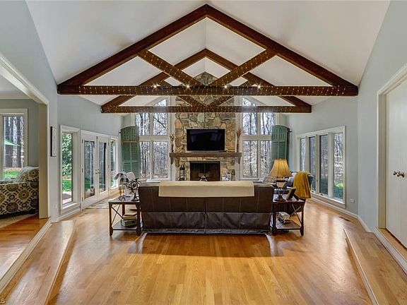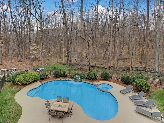 Incredibly scenic setting minutes from the city. Unbelievable outdoor living spaces! Private cul de sac 1.62acre lot with pretty mature landscaping, built-in firepit, and inground pool and spa surrounded by attractive fencing. Superior custom home built by one of Greensboro's premier builders, Bea Melton. Entry opens into the dramatic living room with a cathedral ceiling, exposed beams, & a stone fireplace and hearth with incredible views of the property. The updated kitchen has a Wolf cooktop, Kitchenaid ovens, and a center island with bar seating. Opens into the spacious dining room with a french door leading to the cozy screened porch. The primary suite has a sitting area & spacious bath with double vanity, oversized shower, & 2 large closets. The lower level has a bonus room & sliding glass doors leading to the pool area. The main level office could function as a 5th bedroom. Highly sought-after school district! Lots of storage. Amazing home for family living and entertaining!!!!