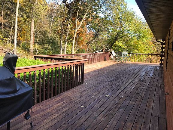 Beautiful 3 bdr, 2 bath home on 3 acres just minutes from town! Enjoy the amazing views of the bluffs from the large 1300 sq ft wrap around deck. Ranch style home, 1750 sq ft with finished basement and attached 2 car garage. All new flooring and beautiful oak woodwork! Location is quite and just 2 miles from Houston, Mn. The wooded backyard is very private, great for pets! Main level laundry, all appliances included.