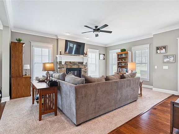 This beautiful home is like new & features superior craftsmanship & attention to detail throughout. The great room is highlighted by a stone fireplace & wall mounted TV above the mantel. It is open to the dining area & kitchen with hand scraped hardwood floors, breakfast bar, granite counters, subway tile backsplash, custom soft close cabinets & drawers, & stainless steel appliances. The food panty/closet provides additional storage. There is the added convenience of a first floor laundry with built-ins & first floor master suite with master bath, dual sinks & granite counters. Three additional bedrooms are housed on the second floor along with full bath with dual sinks & separate shower & commode. The 12 course basement is plumbed for a bath. Like to entertain outdoors? Then youll love the large patio, built in bar, grill & fire pit. All 4 wall mounted TVs will remain. Plan to view this lovely home soon!