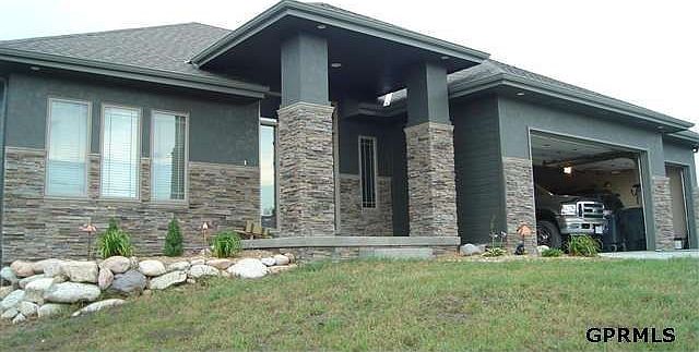 Dynamite ranch on 2+ acres w/ room for 5 cars! This home, built in 2006 has high end features including 26 x 30 outbuilding w heat, power & 9 ft insulated doors, nice outdoor kitchen w $6000 grill, trayed 12 ft ceiling in family room, gorgeous wood burning fireplace, kitchen/dining room has beautiful Italian tile floors, granite counters, heated floors in master bath, 2 stage heat pump with 3 zoned heating system. The list goes on! Gorgeous country setting only 15 minutes to Omaha!