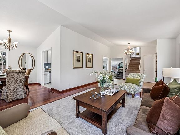 Incredible price for this move-in ready 4 bed, 2.5 bath home in the Edenvale area of San Jose. The spacious living room features soaring vaulted ceilings, rich cherry hardwood floors, and abundant natural light. A formal dining area flows into the updated kitchen with quartz countertops, stainless steel appliances, wine frig and ample cabinet space. Just off the kitchen, the step-down living room includes a stylish wet bar with lighted shelves and a gas fireplace. Upstairs are three comfortable bedrooms plus a enormous primary suite with high vaulted ceilings, dual vanity, new sinks and fixtures, a jetted tub, and a built-in makeup area. Recent upgrades include fresh interior and exterior paint, a newer A/C unit, and a central heating system (2025), new carpet, LVF in all bathrooms, and the removal of popcorn ceilings. The home is energy-efficient with 38 owned solar panels, dual-pane windows. Step outside to a backyard designed for entertaining with a sparkling in-ground pool, a spacious gazebo ideal for games and fun with friends. A separate shaded pergola for poolside lounging. There's space for your BBQ and a fenced dog run. Located near shopping, restaurants, and Edenvale Garden Park—with easy access to Hwy 101 and Cal train station—
