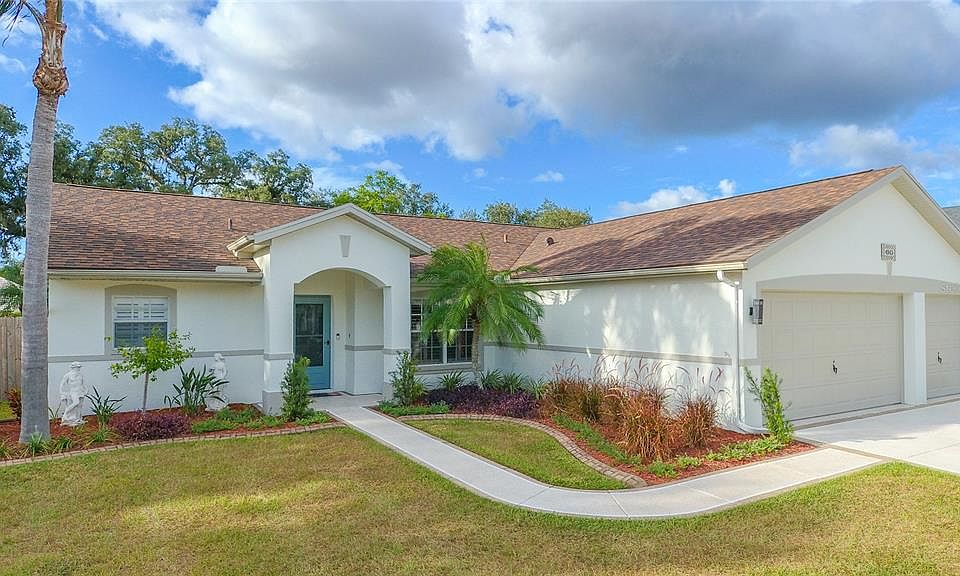 **BETTER THAN BRAND NEW HOME*** This beautiful home showcases an OPEN FLOOR PLAN, with 3 bedrooms 2 bathrooms and 3 car garage! The inviting covered entry surrounded by lush landscaping and welcoming foyer offers views of the spacious great room space and enclosed 25 x 8 Florida room with brand windows with screens to enjoy year round! Triple sliding glass doors all pocket open allowing the family room wide open access and additional living area. This freshly remodeled home features HIGH CEILINGS with new rigid core vinyl floors, new upgraded fixtures, interior and exterior painting, plantation shutters, designer ceiling fans, inside utility room with new sink, new washer and dryer with storage cabinets, split bedroom plan with secondary bedrooms that share the well-designed hallway bathroom, generous MASTER BEDROOM with WALK-IN CLOSET with included shoe rack, sliding glass doors leading to Florida room, exquisite design details in the owners ensuite with adult height quartz vanity tops and dual sinks with beautiful mirrored Kohler Medicine cabinets, 19 inch high toilet, custom-tiled walk in shower with built in stainless steel bench that can be folded away. Enjoy cooking in the stylish kitchen featuring QUARTZ countertops, modern backsplash, top of the line STAINLESS STEEL APPLIANCES, solid wood SHAKER STYLE cabinets, indirect lighting above the cabinets and below for evening lighting, immense walk in panty closet, breakfast bar that opens to the great room and a spacious breakfast nook overlooking the front garden area. This is a dream home come true! Start planning your pool, play-set or garden in your LARGE backyard fully fenced with a lot size over a quarter-acre! No need to worry about maintenance headaches with AC unit(2019) hot water heater (2015) Roof(2019). Low annual HOA, No flood required, spacious 3 car garage has loads of storage including cabinetry and room for outside refrigerator. Room Feature: Linen Closet In Bath (Primary Bedroom).