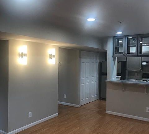 Come home to this stylish rental loaded with upgrades. Freshly painted throughout, laminate flooring in living and dining rooms with recess lighting. Cozy wood burning fireplace in living room and slider to deck. Sleek upgraded kitchen with granite counters, stainless steel appliances and modern see through cabinets. Kitchen overlooks open space dining room. Upper level has two large bedrooms each with full baths totally renovated, walk in closets and new carpet. Owner pays trash, sewer and HOA fees. Tenant pays gas and electric.