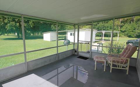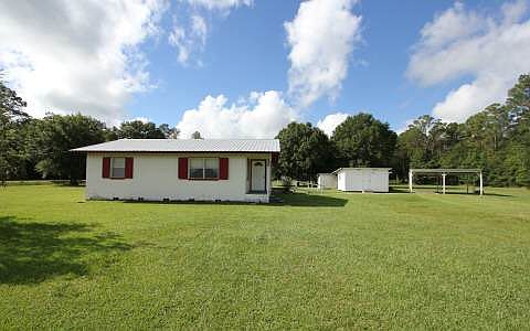 Nice corner lot location on approximately 2 acres. In the country yet city close. The property is cleared of scrub & pines with nice oak trees for shade. Home has living room and dining area, two bedrooms and one bathroom. The bathroom has been updated with new wiring & plumbing, taller vanity, large step in shower and tile floors. Carpet throughout home with tile in kitchen. One bedroom has laminate wood floors. Large screened porch to enjoy the outdoors. Large utility room, one double carport and one single carport plus a storage shed. Metal roof. Sold AS IS inspections welcomed.