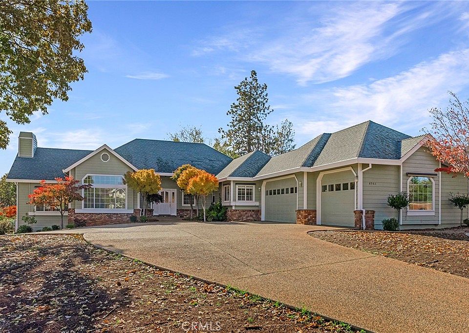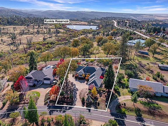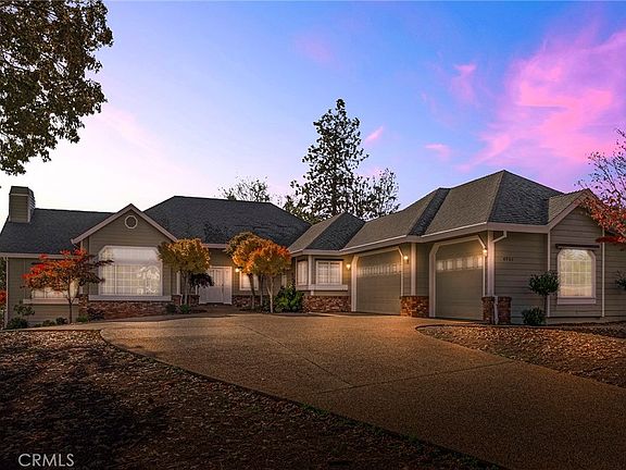 This Custom Built Home is located in one of the Best Neighborhoods in Paradise. All large custom homes on 1 acre plus lots! Views of the surrounding Mountains! The mature trees and landscape welcome you and your guests into this neighborhood. This custom home offers 2,800 sq. ft. with 3 bedrooms, 240 sq. ft. Den/Office and 2 full baths! 2018 Central Heat and Air system. 2023 Hot Water Heater. Newer Exterior paint. Newer Hardwood Floors! The kitchen overlooks the living room with a 16Ft Vaulted Wood Beam Tongue & Groove Ceiling, Natural Gas Fireplace wrapped in brick, tons of 6ft. tall dual pane windows that are wood encased. The kitchen offers wood cabinets, 4X6 butcher block island with secondary sink & breakfast bar, Samsung refrigerator, built in oven, microwave and natural gas range, granite counter tops, informal dining area and custom wood vent hood! Off the kitchen is the 15'X18' sunroom with tons of dual pane windows and high vaulted ceilings. The solid wood floors are throughout the formal dining room, hallway, office/den & all three bedrooms. The formal dining room offers 9 ft. ceiling with a 10 ft. trey ceiling, 5" baseboards and a 10ft. wide picture window with a transom window above. The spacious primary bedroom offers 9ft. ceilings, crown molding & french glass doors to the covered patio. The primary bathroom has a jetted tub with fantastic views, dual sink vanity with tiled counter tops, 20X20 tiled floor and a step in tiled shower. The guest bath offers dual sink vanity with tiled counters, 20X20 tiled floors and a tiled tub/shower combination. The large laundry room has tons of built in cabinets, utility sink and newer plank tile flooring. The 3 car garage offers an epoxy floor, 220 volt plug and a ceiling mount gas furnace. The covered back patio/deck measures 12ft.X39Ft. Fully fenced yard with rolling gate entry to concrete pad measuring 25ft. deep behind the gate, plenty of room for expansion. The yard offers a variety of fruit trees and mature vegetation. Concrete pathways go around entire home. Plenty of room and sun for gardening. Fantastic views of the foothills, mountains and even Kunkle Reservoir. Only minutes away from the full service Lime Saddle Marina of Lake Oroville. This is a wonderful place to call home.