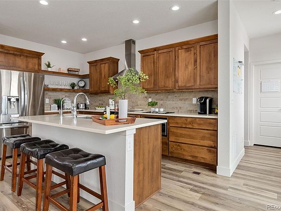 Ask About The Lender Incentives On This House Worth Up To $10,000!! Situated on a picturesque lot with incredible views, this home is tailored for luxurious living! Vaulted ceilings and an airy layout are accentuated by an abundance of windows to create an inviting space flooded with natural light. The main floor features a sunny living room, an open kitchen and dining area, a walk-in pantry, a pocket office, a private half bath, and laundry room with practical built-ins. Upstairs the east-facing views from the primary bedroom are breathtaking! The spacious primary bedroom includes an en suite with an oversized shower, dual vanities, a private commode, and a large walk-in closet. The generous secondary bedrooms share a bathroom, each with private vanities. Entertain in style in the finished walk-out basement. From cozy movie nights to lively gatherings, this versatile area is sure to impress. The basement bedroom is a spa-like oasis, complete with a newly finished dual rain shower en suite. Embrace efficiency and sustainability with a water softener, home humidifier, tankless water heater, and solar panels, while the Nest thermostat puts climate control at your fingertips. Outside, the meticulously landscaped yard, raised deck, and expanded patio, provide a serene backdrop for outdoor activities, from a game of horseshoes to enjoying the sunset. The garage is more than just a place to park your vehicles – an epoxy floor, fully dry-walled interior, heater, and a built-in projector screen make this space a continuation of the home. Brighton Crossings offers amazing amenities including two pools, two fitness centers, a dog park, multiple parks and playgrounds, and tennis and pickleball courts! Schedule your showing today and make your dream home a reality.