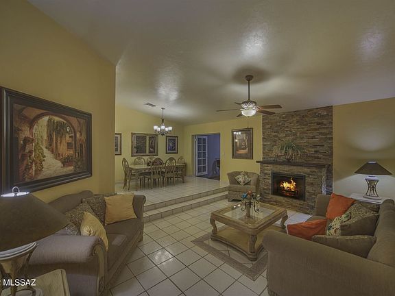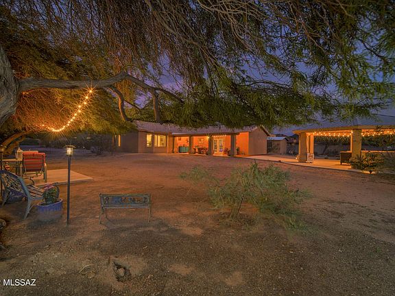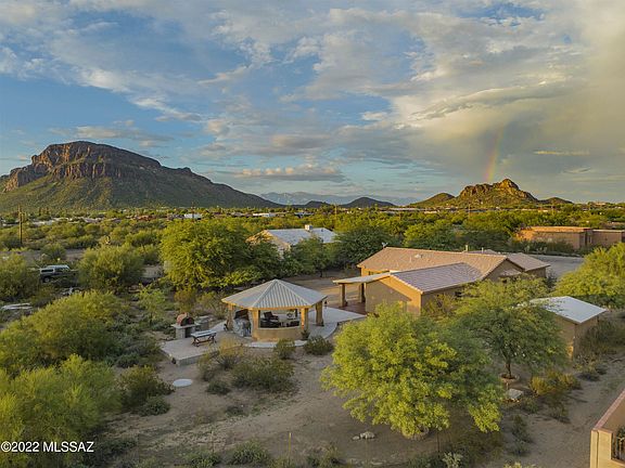 Resort style living in this stately block construction home w/stucco finish. Beautifully landscaped .92 acre lot provides Spectacular Sunset, Sunrise, & mountain views. Back yard features extended cover patio off family room, Impressive Ramada, built in pizza oven, & mesquite trees w/branches that canopy sitting areas w/Whimsical lights hung throughout the yard for ambiance. 14 x 16 site built storage shed. A Stately fireplace is a focal point in cozy living room which is open to the formal dining room. New Kitchen features bay window, stainless appliances, granite countertops, & cabinets w/pull out drawers. Tile and wood throughout. Family room is entertainers dream; Movie room & bar can be multipurposed. Bathrooms updated w/new cabinets & glass bowl sinks atop stately granite counters.