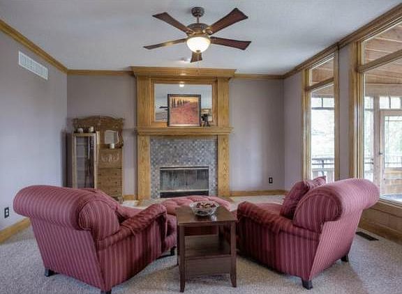 An Amazing Custom Country Home backs to Pond/Greenspace w/Mother-in-Laws Qtrs! This is a one of a Kind Home w/exceptional upgrades. Hickory & Cherry hardwood floors. Berber carpeting in living room, basement and stairway. Four fireplaces! Custom Crown molding throughout, complimenting every detail of the home. Heated slate floors in Master bathroom. Heated tile floors in Mother-in-law qtrs. Designer Granite & Slate in Kitchen/bathrooms. Custom/Designer hickory cabinetry encompasses all kitchen appliances! Exceptional! Designer Gourmet Kitchen w/Thermador refrigerator. Copper ceiling throughout kitchen! There are two Wolf ovens. Subzero mini-frig, KitchenAid, Grohe appliances, and Baking Station. Hunter Douglas powered blinds. Pella windows throughout the home. Walk-in panty, and four Fireplaces. Central vacuum system throughout the house. Expansive three car garage with an additional fourth garage on lower level. Outdoor Liv Space is Awesome w/Huge Cover Deck & Patio. A Waterfall feature with two ponds! A Brick firepit, and beautifully maintained flower bed. All trees, hedges are exceptionally trimmed and pruned. Landscape impeccably maintained as well. Mother-in-Law Qtrs is a Dream w/Lake Views,Vaulted Ceiling, beautiful Kitchen w/Granite, and hardwood floors. Exceptional quality and workmanship throughout the home!